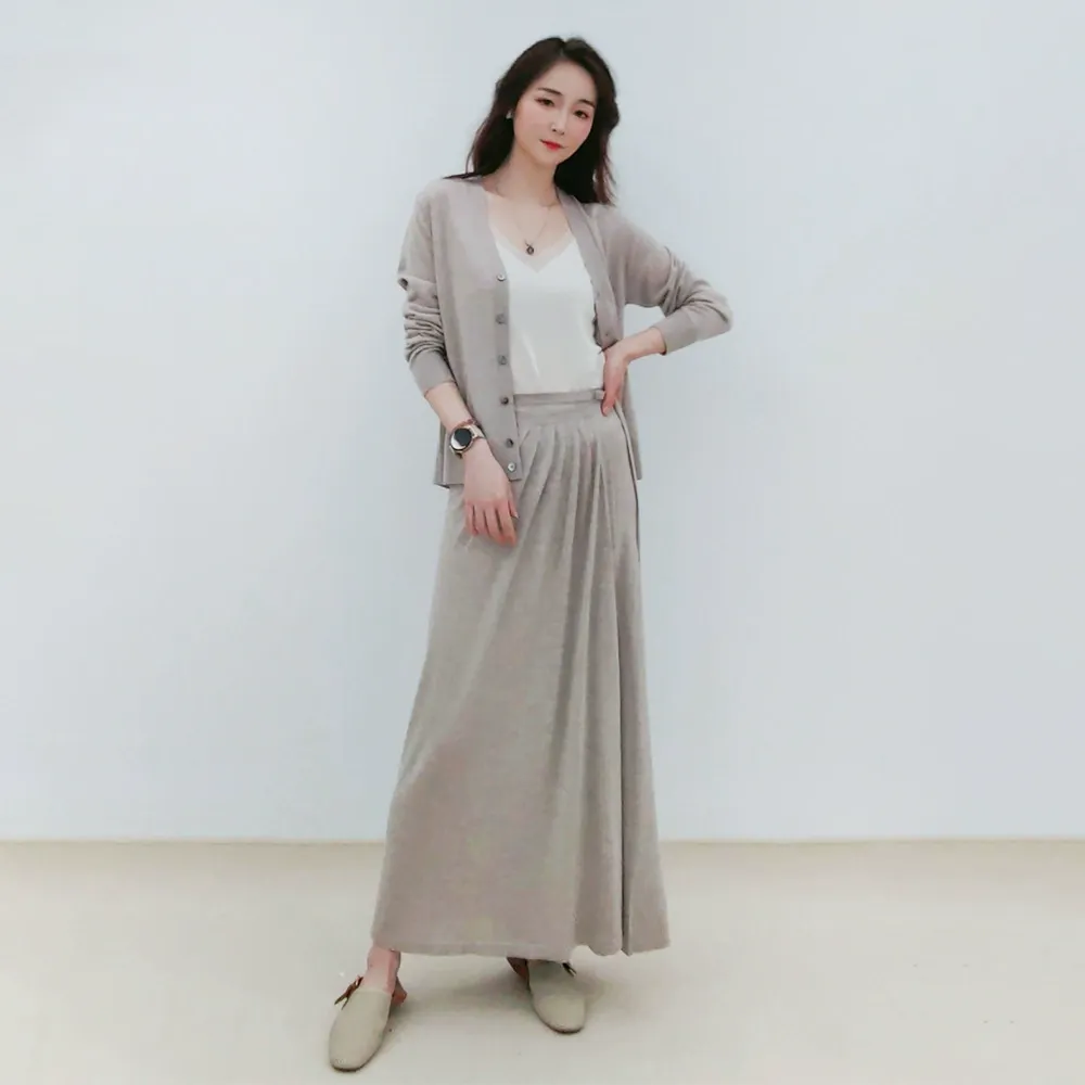 one piece wrap skirt versatile classic new item 16 stitches spun mulberry silk wool knitted half skirt for women to look slim
